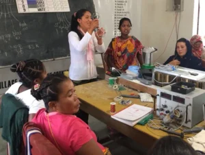Todo empezó con una alianza entre EKHOS y Barefoot College Tilonia, una organización india que empodera y entrena a mujeres rurales sobre ingeniería solar domiciliaria.