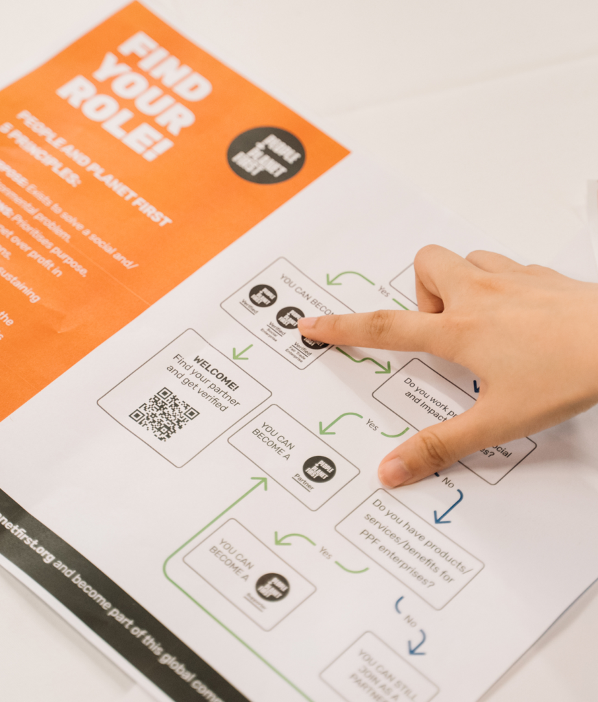 People and Planet First fue desarrollado por y para el movimiento de la nueva economía, con el objetivo de verificar de forma simple y accesible el propósito central y el modelo de negocio de la empresa. Cada empresa con el distintivo verificado de People and Planet First resuelve problemas sociales y/o ambientales y reinvierte la mayoría de sus ganancias para beneficiar a muchos, no a unos pocos. Puede complementar certificaciones de políticas y prácticas, pero también puede servir como un diferenciador.